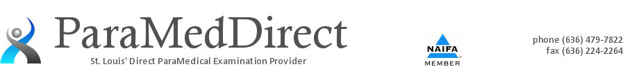 ParaMedDirect, LLC is a locally owned, small business, capable of providing a more personalized, one-on-one service, to you and your applicants. Providing paramedical exams since 1995. Member NAIFA - St. Louis